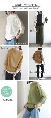 [アンドイット] 7分袖シームレスボートネックコクーンプルオーバー