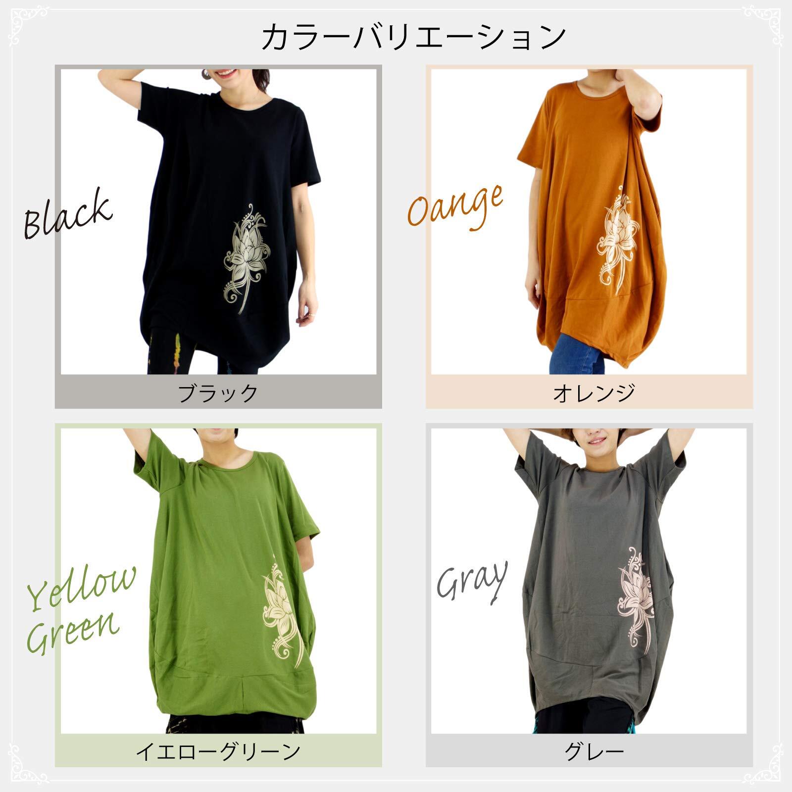 カラーは豊富な8色をラインナップ。ナチュラル感のあるカラーから、ポップなカラーまでお好みや用途に合わせてお選びいただけます◎向かって右下部分には蓮の花をモチーフにしたビッグプリントをON。本体カラーとのコントラストも美しく、チュニック一枚でおしゃれなリラックスコーデが完成します。