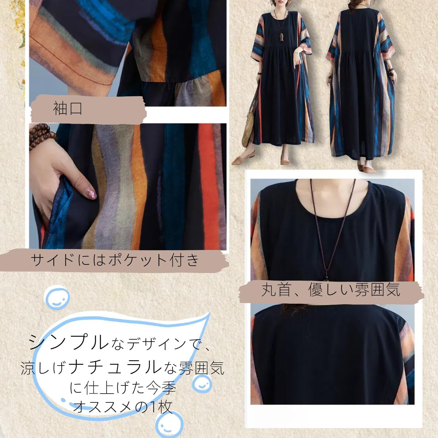 [TAITENG] ロング ワンピース レディース マキシワンピース 夏 リネンワンピース ストライプ 半袖 オーバーサイズ 体型カバー 着痩せ ゆったり 夏物ワンピース 大きいサイズ