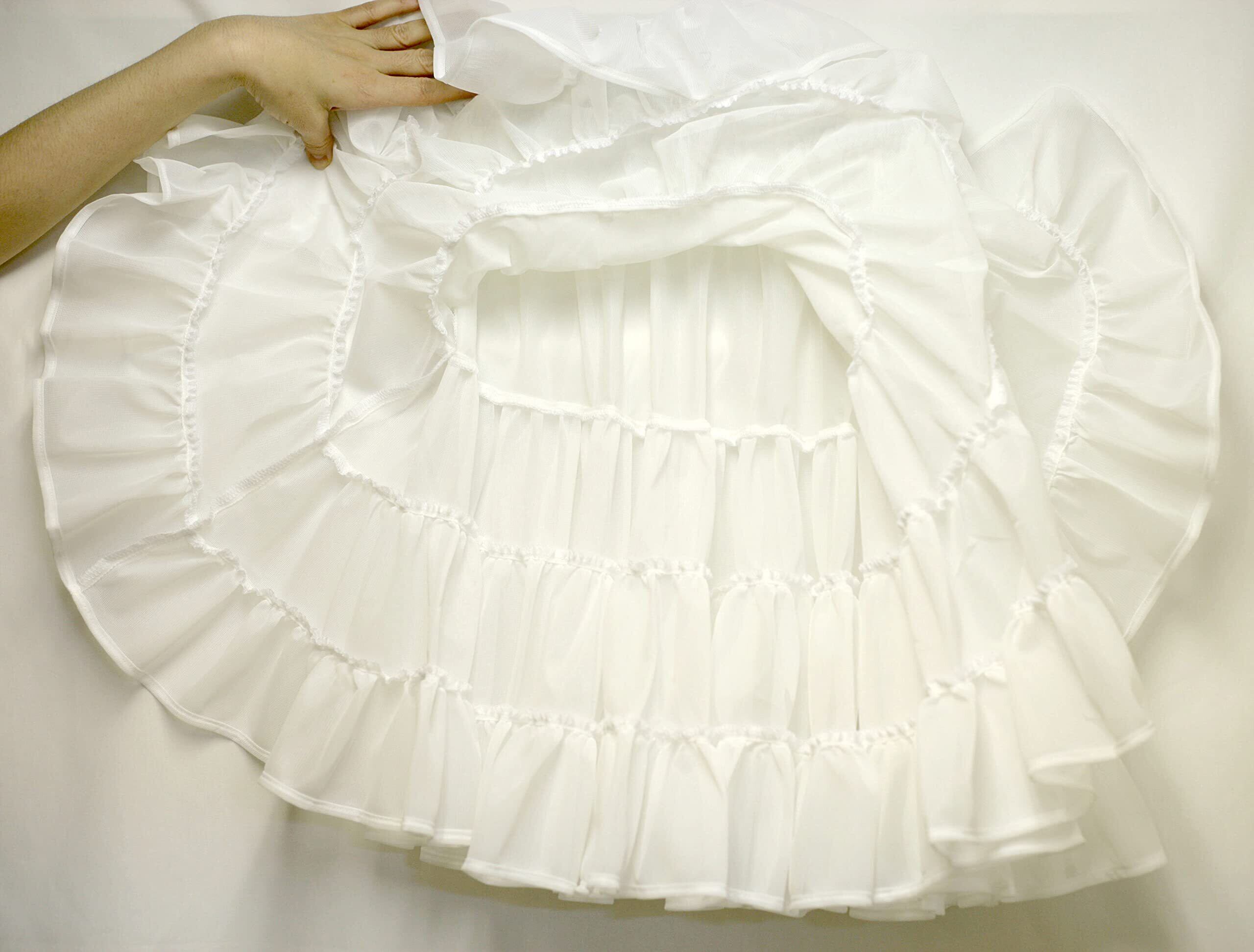 ■ヨーク素材が柔らかくごわごわしない ■フリル素材は張りのあるトリコット使いで3段フリルが綺麗な広がりを作ります ■ロングパニエの一重タイプです。■ 裾は三ッ巻始末です。■グループでの購入にも対応させて頂きます。 ■通常ウエスト60c~70c総ゴム対応 ■ウエスト部分にはゴム取替え口有り