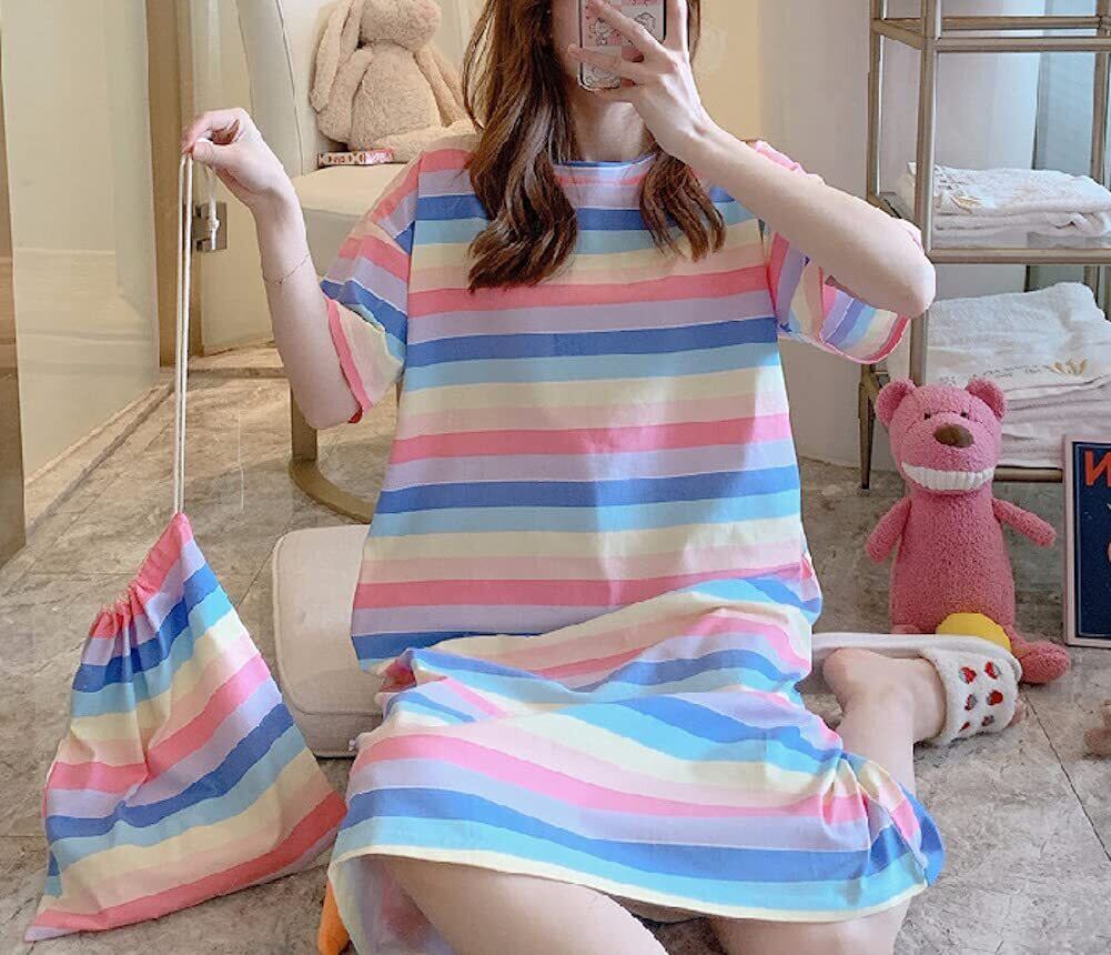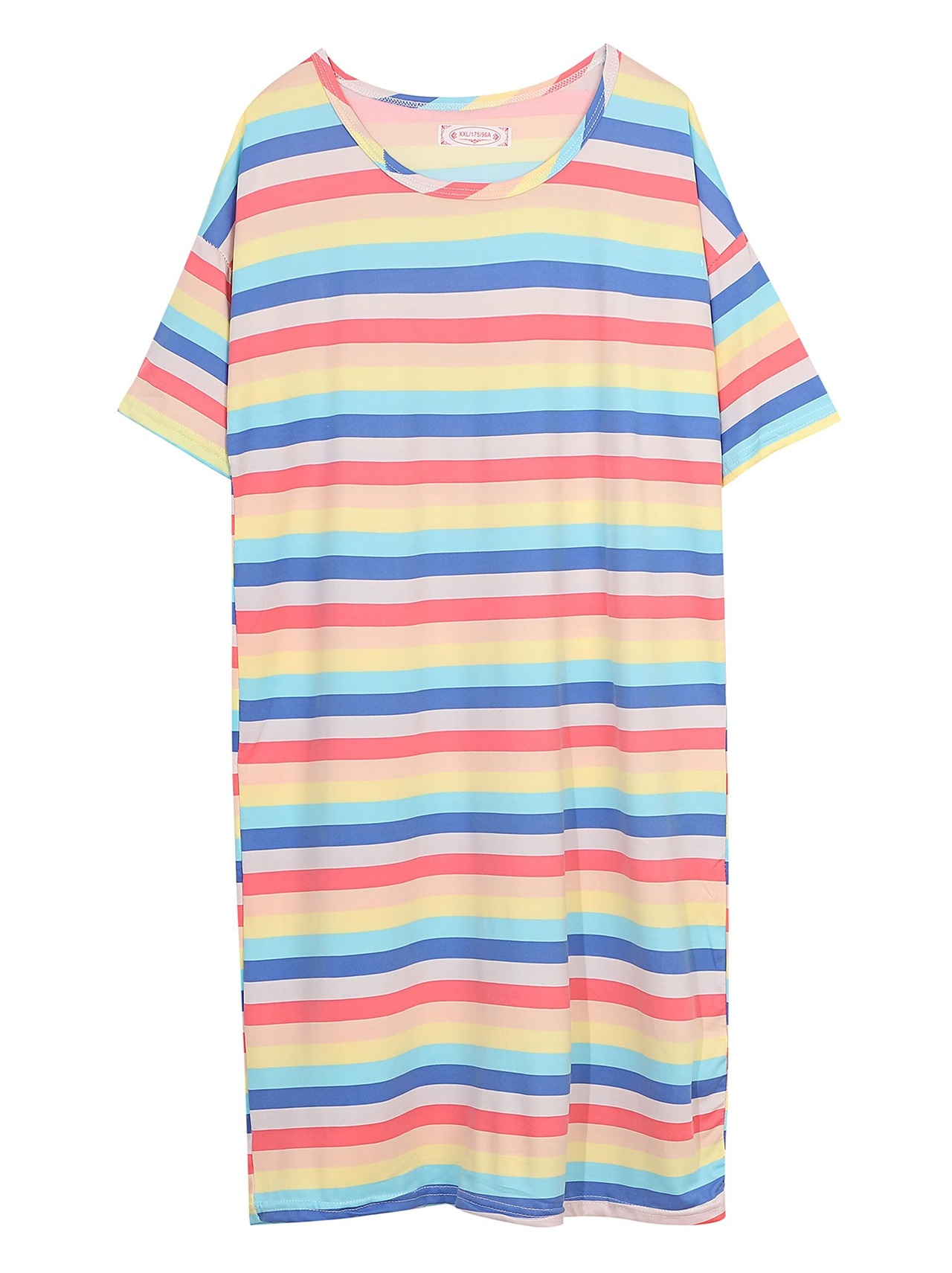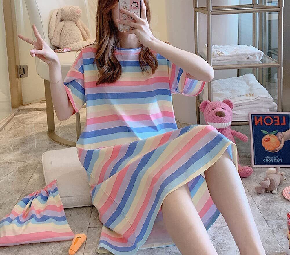 [TOKYO GOODS MARKET] 【ぴゅありぼん】 大きいサイズ ゆったり ロング丈 ワンピース ルームウェア (ボーダーマルチ XXL)