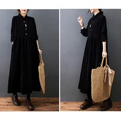 【特価商品】[YYQ-SHOP]ワンピース レディース コーデュロイ シャツワンピース ゆったり 長袖 ロングワンピース マキシ丈 春 秋 冬 大きいサイズ Aライン 体型カバー 無地 ポケット付き(10ブラック) | BOSSO