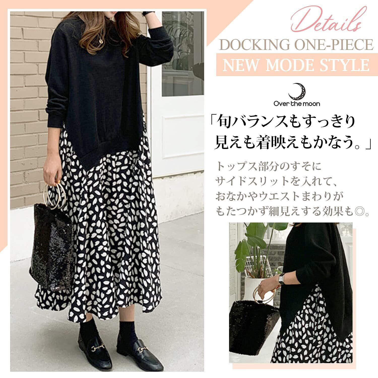 [Over the moon] ドッキングワンピース レディース 長袖 フレアスカート 小花柄 秋冬