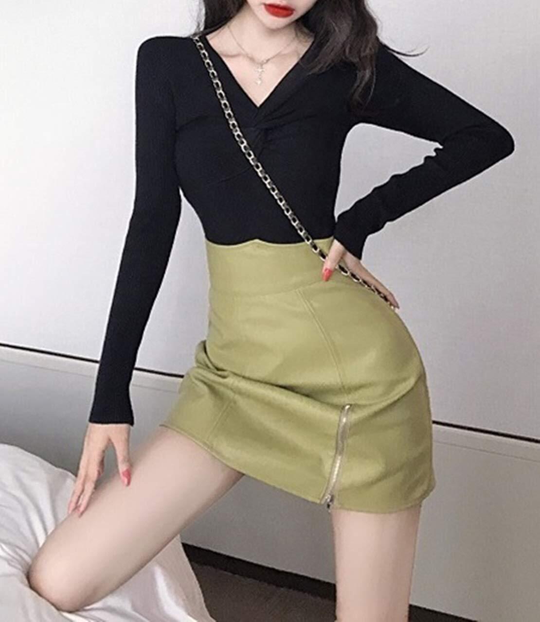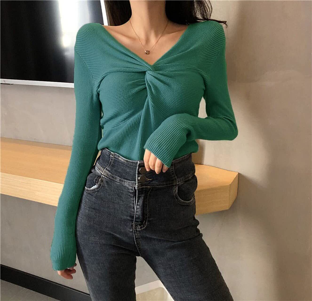 ■胸元がリボンの結び目のようにデザインされた、女性らしくキュートでセクシーなニットセーターです。