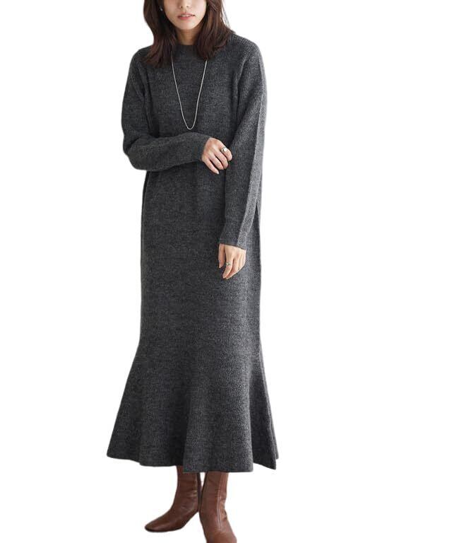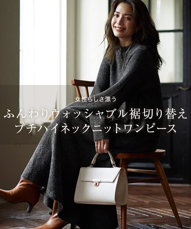 [ピエロ] ふんわり ウォッシャブル 裾切り替え プチハイネック ニット ワンピース レディース
