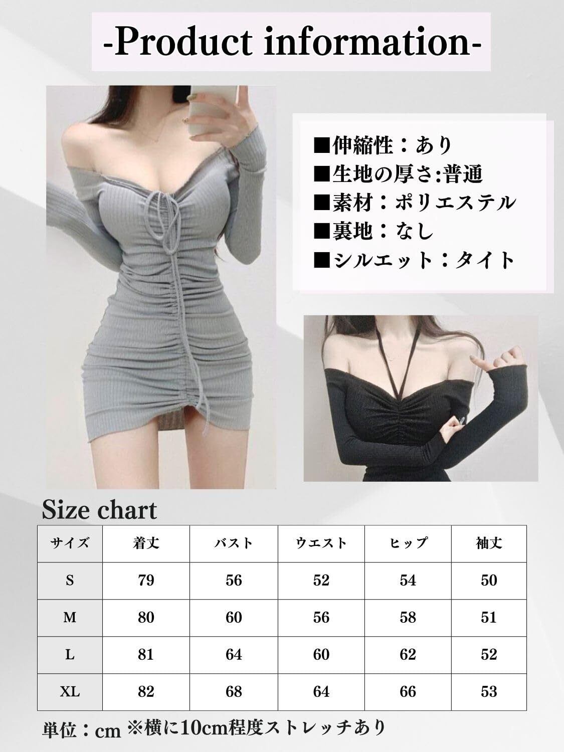 [ココアンドユカ] オフショルダー リボン セクシー ミニ タイト ワンピース 長袖 ルームウェア レディース 胸元 開き 肩出し ワンピ