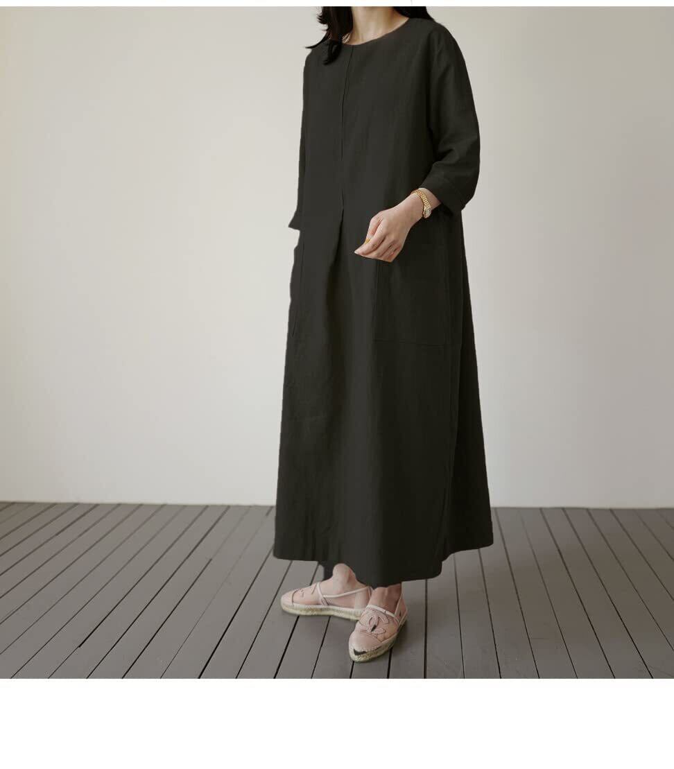 [KKAERDIYA] 新6色入 长袖 春 秋 冬 ロングワンピース レディース ワンピース チュニック マキシ丈 無地 綿麻 ゆったり 大きいサイズ レディース着痩せ お洒落 春 夏 秋冬