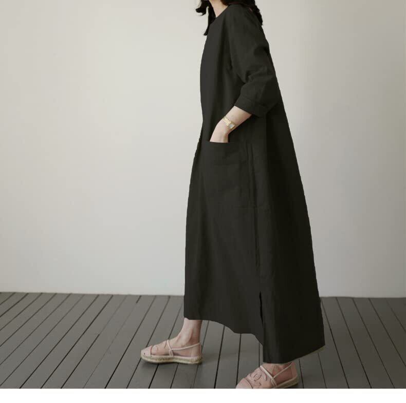 【在庫処分】[KKAERDIYA] 新6色入 长袖 春 秋 冬 ロングワンピース レディース ワンピース チュニック マキシ丈 無地 綿麻 ゆったり 大きいサイズ レディース着痩せ お洒落 春 夏 秋冬 | BOSSO