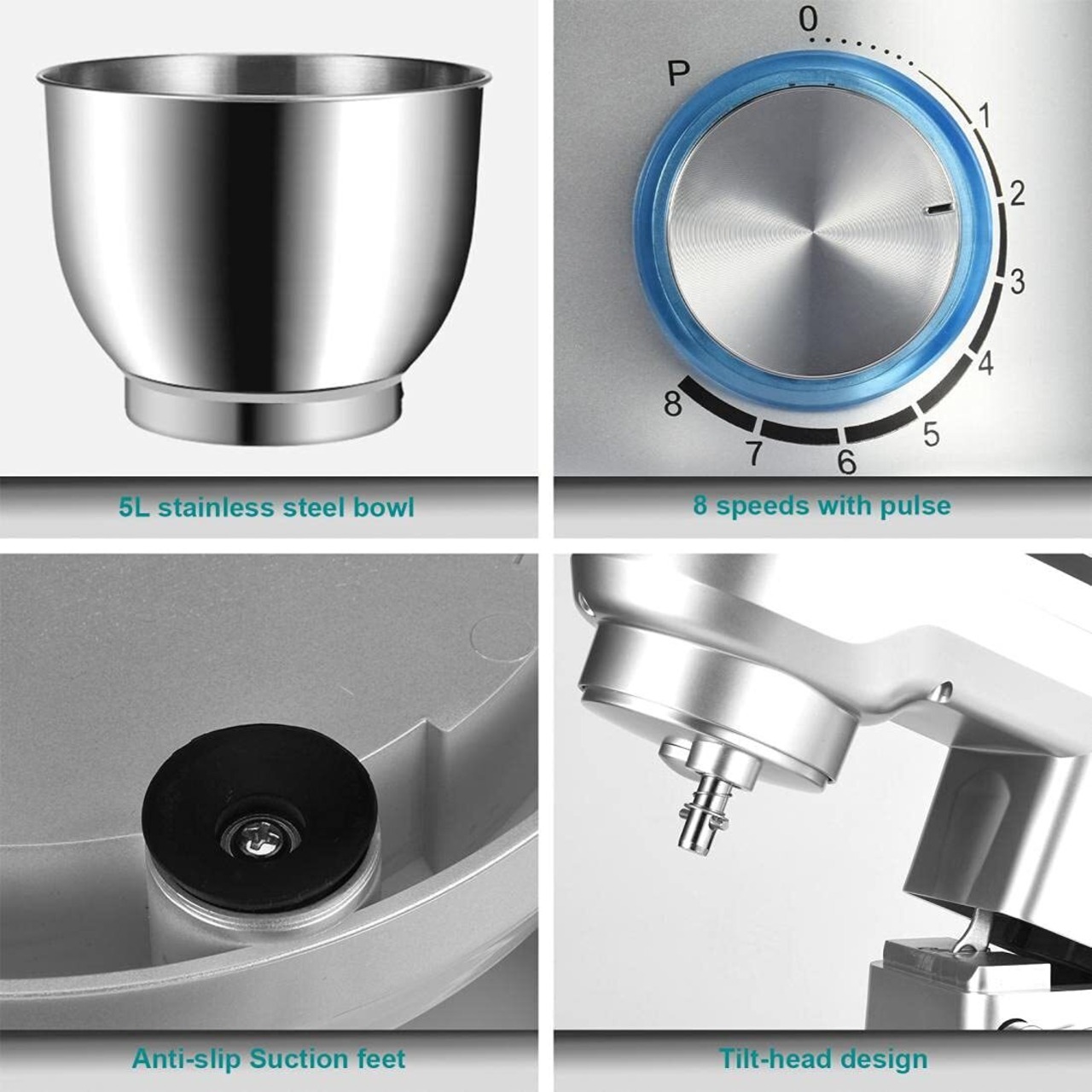 [トランテアン ソン ドゥ モード] ZosuMae Stand Mixer5L 1000W Kitchen Electric Mixer8 Optimized SpeedsLow Operation Noise[Fast Delivery From UK] (Silver)
