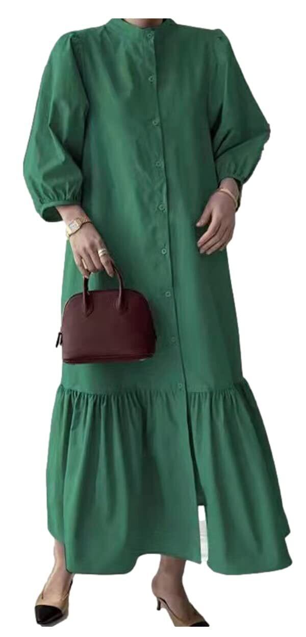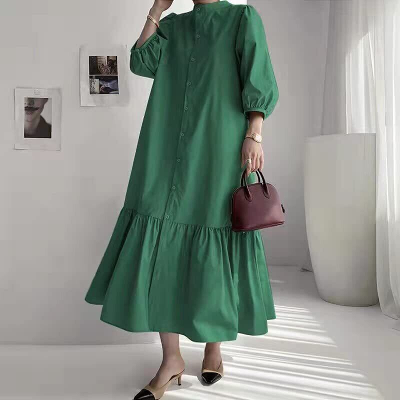 ティアードがコーディネートのアクセントになるワンピース。 ハリのあるコットン素材を使用し存在感のあるシルエットに◎ ふわっと広がるシルエットで気になるボディーラインをさり気なくカバー。 インナーにハイネックを入れたり、ニットベストとレイヤードしたりとアレンジ次第で様々なスタイリングに応用が出来ます。 デニムなどのパンツとカジュアルに合わせるのもおすすめです。