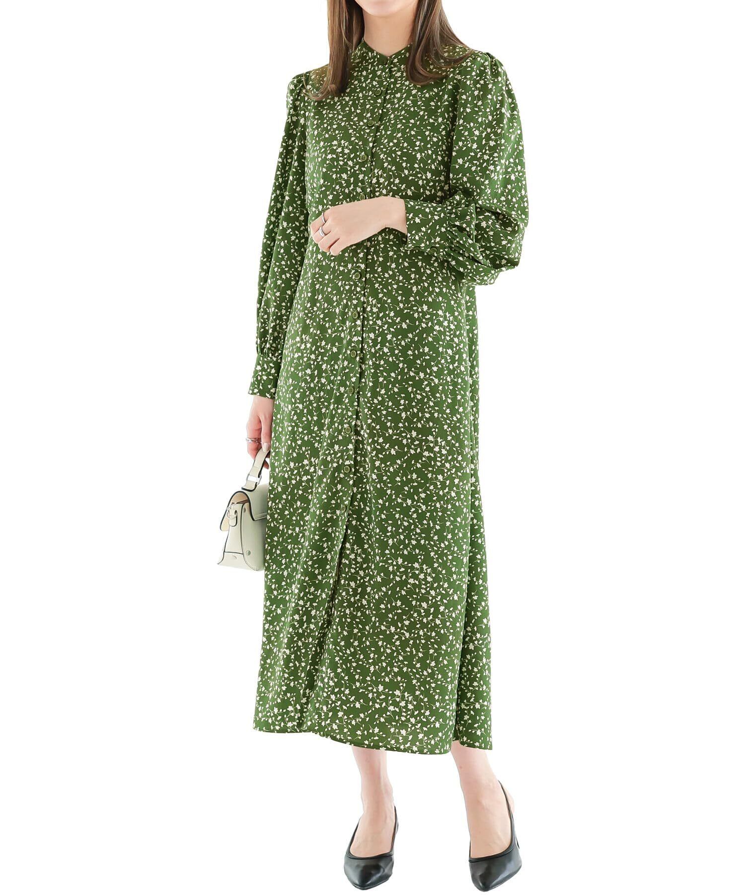 単色のプリント柄が、華やかながらも大人っぽい印象。