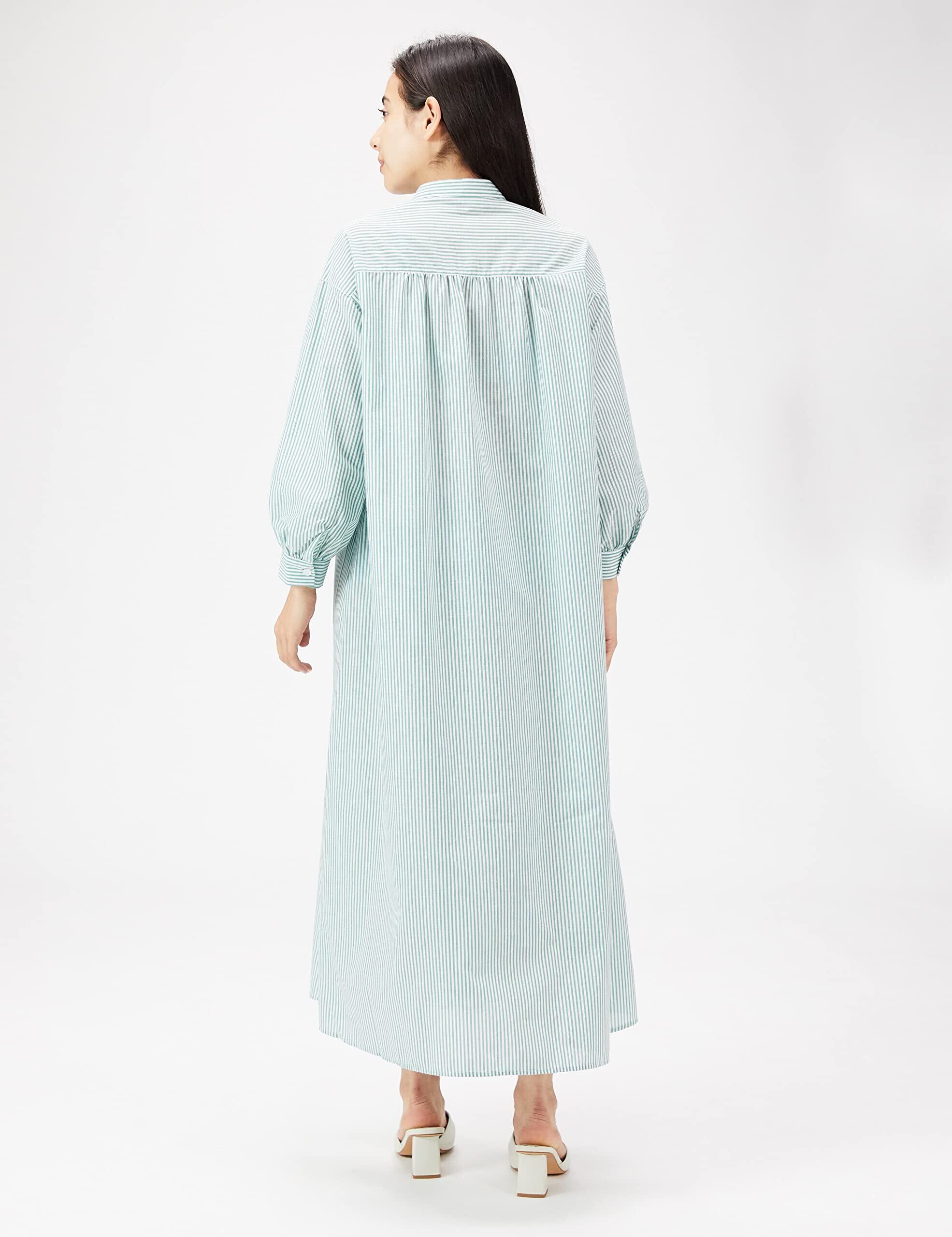 デザイン・シルエット : 体型をカバーしつつもすっきり着られるAラインシルエット。大人も着やすいロング丈。メンズライクなバンドカラーで、ブルーのみ配色切り替えのクレリックデザインになっています。