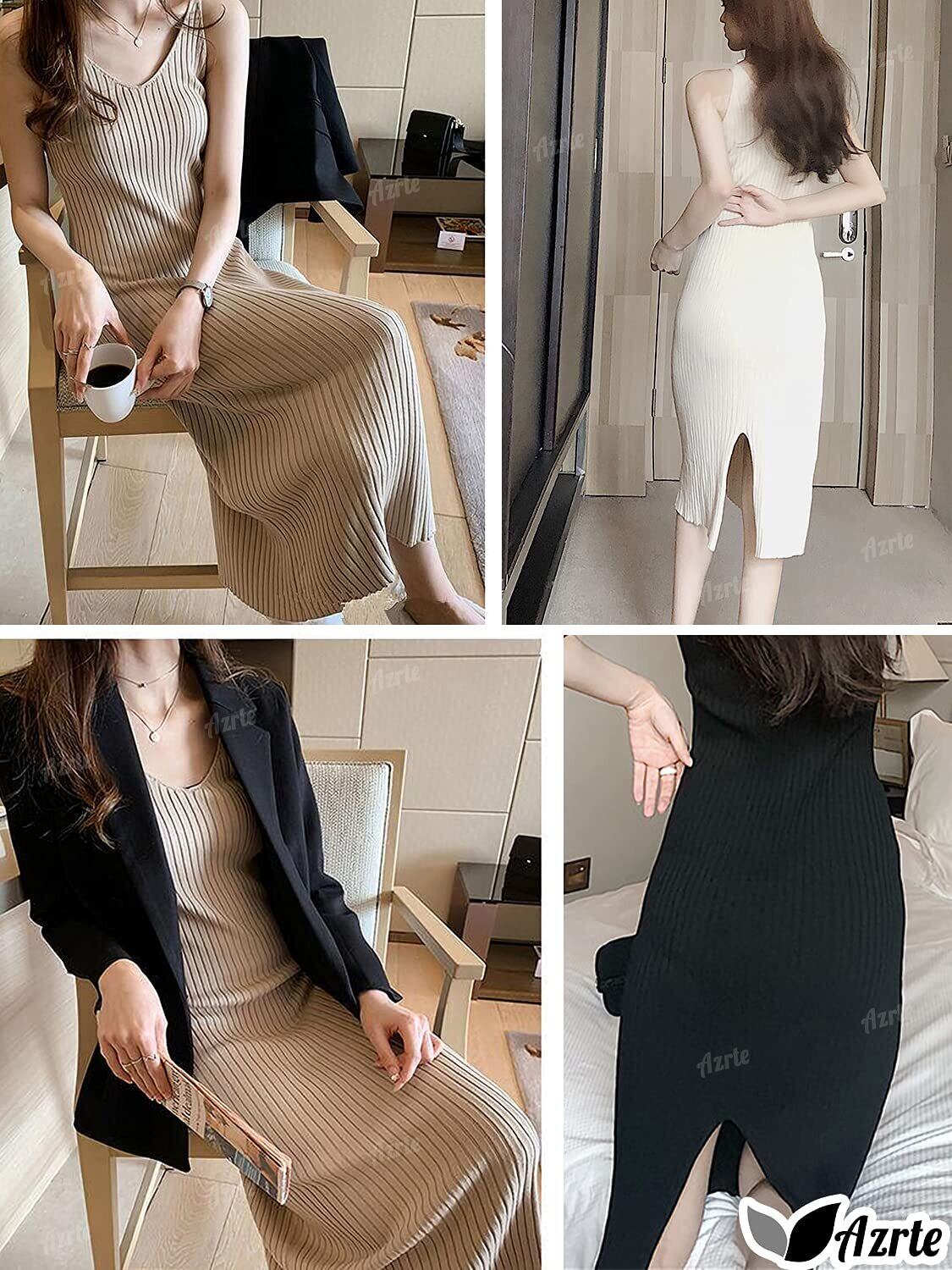 [アズルテ] リブニット ワンピース 3色 フリーサイズ 春 夏 秋 ロング キャミワンピ