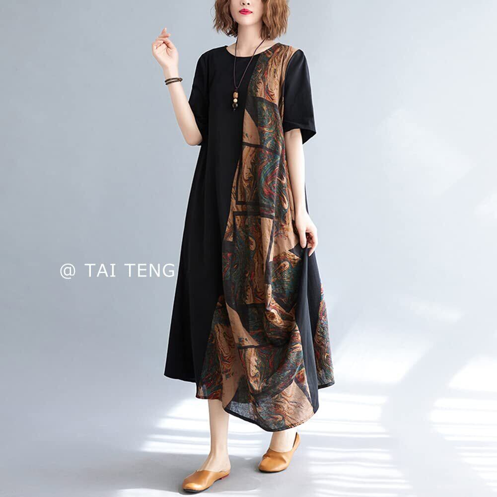 【特価商品】[TAITENG] マキシワンピース レディース ゆったり 夏 ロング ワンピース 丸首 リネンワンピース 半袖 オーバーサイズ 体型カバー 着痩せ 夏物ワンピース 大きいサイズ | BOSSO