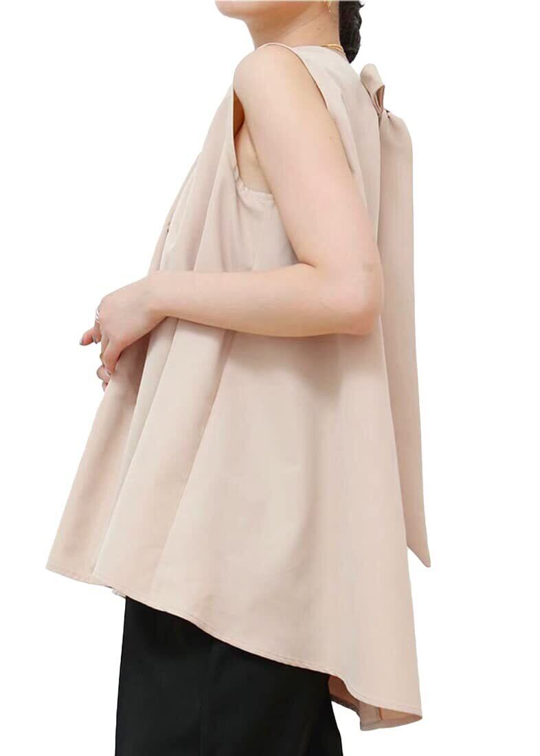 [アイカ] チュニックブラウス チュニックシャツ チュニックワンピース 薄手 無地 バックリボン ゆったり Aライン ノースリーブ レディース