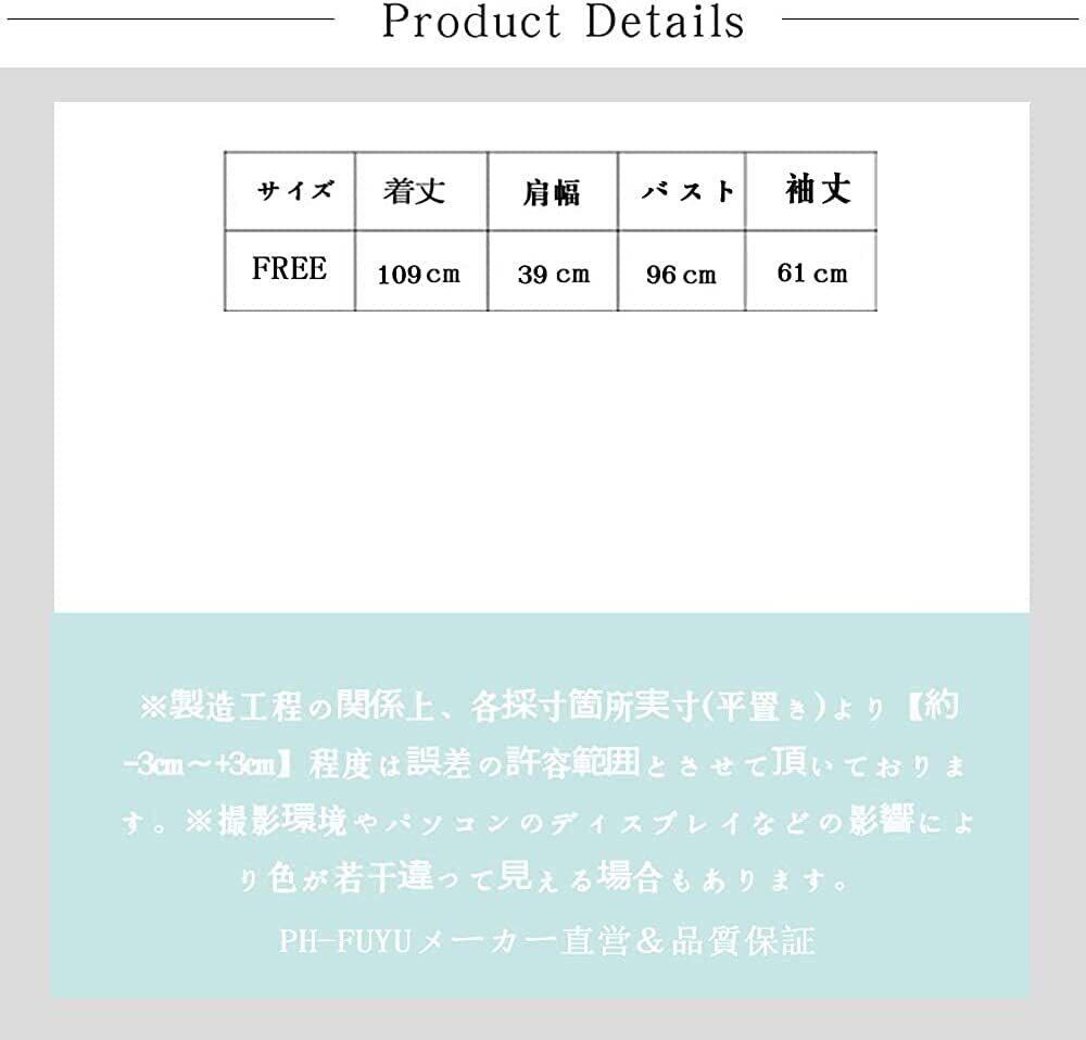 サイズ:着丈109cm バスト96cm 肩幅39cm 袖丈61cm ウエスト調節できる。※製造工程の関係上、各採寸箇所実寸(平置き)より【約-3cm~+3cm】程度は誤差の許容範囲とさせて頂いております。※撮影環境やパソコンのディスプレイなどの影響により色が若干違って見える場合もあります。