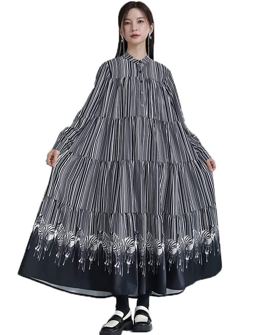 [もうほうきょう] ロングシャツワンピース 長袖 マキシ丈 ゆったり レディース