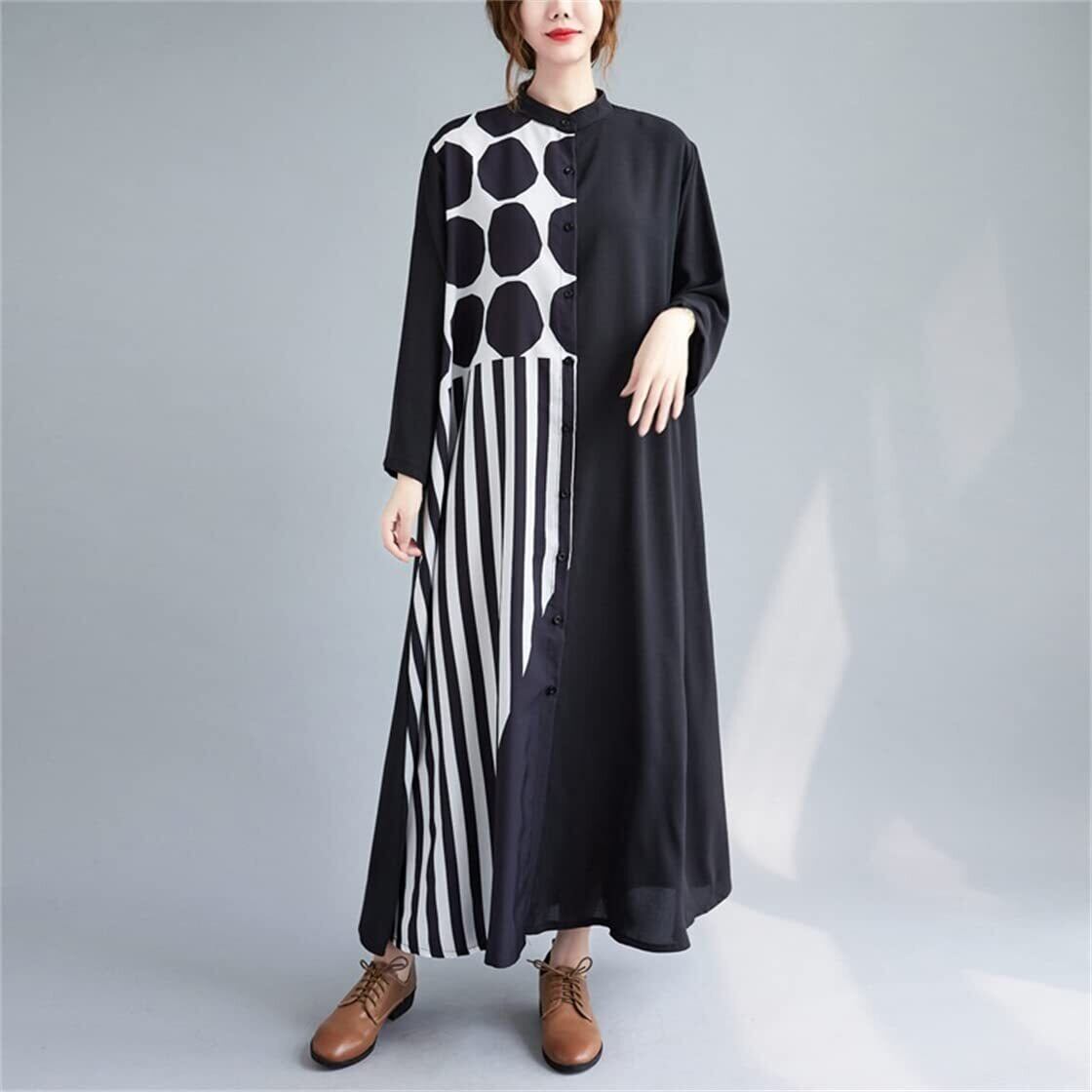 [もうほうきょう] ワンピース レディース ロングシャツワンピース 長袖 ゆったり 切り替え カジュアル Hライン 春秋冬