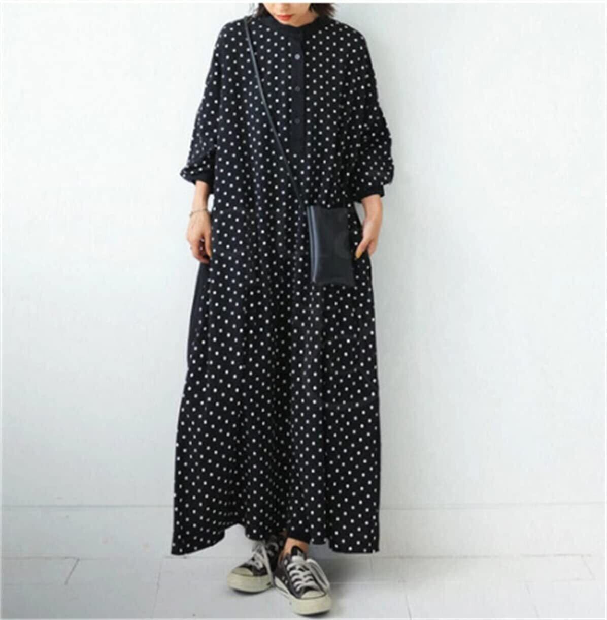 【特価セール】[もうほうきょう] ロングワンピース レディース ワンピース マキシワンピース シャツワンピース ドレス ドット 長袖 体型カバー ミモレ丈 ロング マキシ丈 カジュアル ゆったり 春秋冬 | BOSSO