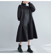 【2022最新】[MMTYRM] ワンピース レディース ロング チュニック ゆったり aライン ドレス トレロ タートルネック ワンピース カジュアル ブラック ビックシルエット ワンピース レディース 服 ワンピース エレガント | BOSSO