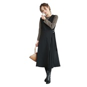 【数量限定】ワンピース ジャンパースカート レディース ロング サロペット スウェット ノースリーブ フレアーワンピース Vネック 無地 プリーツ きれいめ おしゃれ 大人パーティー 通勤 春夏秋 | BOSSO