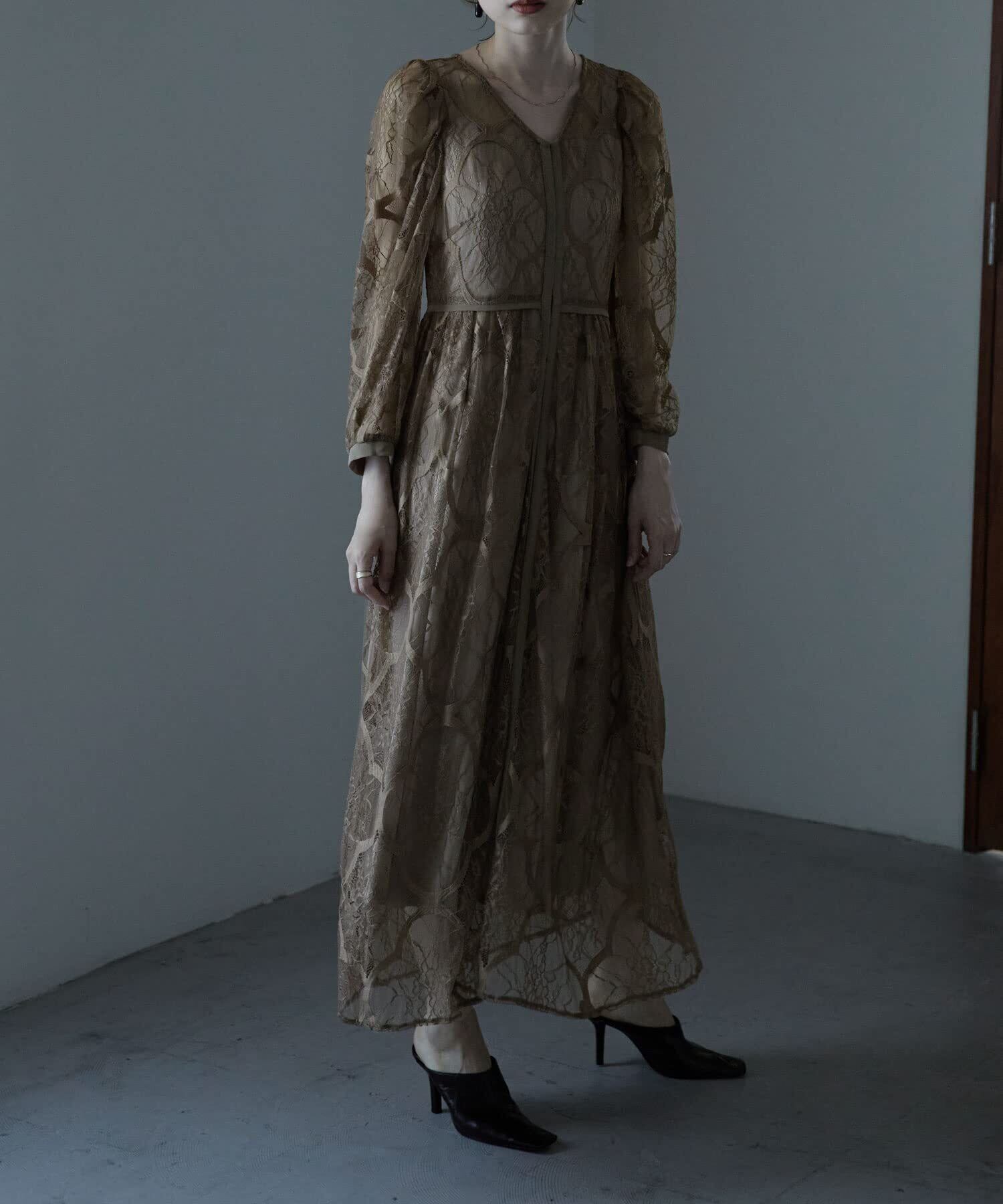 [etoll] レイヤードレースドレス ワンピース ワンピ ドレス オケージョン フォーマル レース 長袖 ロング ロングワンピetd350008