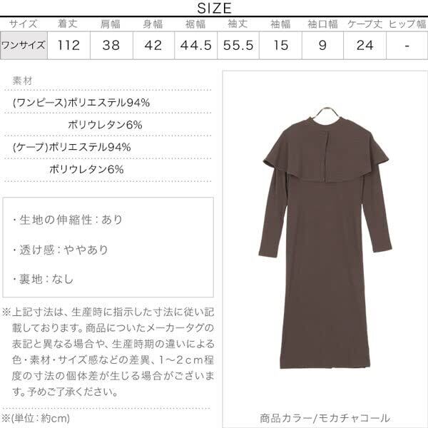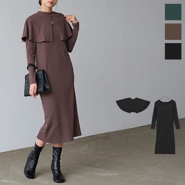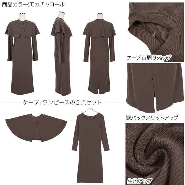 [神戸レタス] 2点セット マルチウェイ ケープ付き リブニットソー ワンピース [E3196]