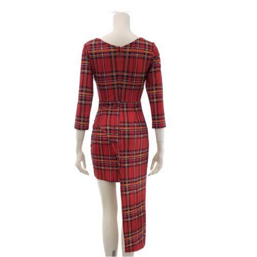 [GRAXIA] 【グラシア】キャバドレス ミニドレス ワンピース キャバ嬢 キャバクラ ラウンジ 五分袖 チェック柄 アシンメトリー レディース