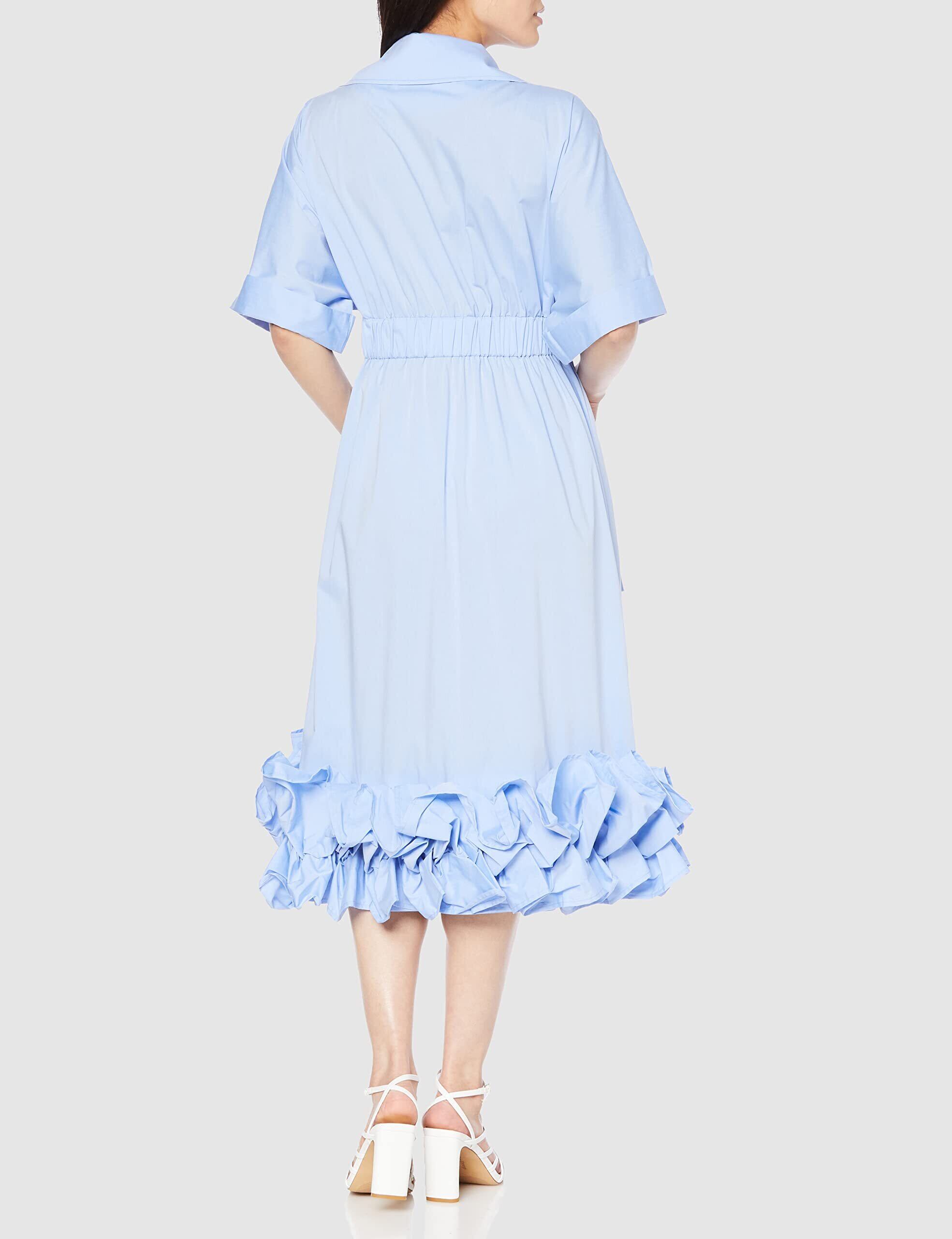 ジャケットのような襟のディテールと、裾のフリルの組み合わせが新鮮なワンピース。シャリ感のあるフリルは形がきれいで、素材の雰囲気により甘すぎず大人っぽく着こなせるのが魅力です。また、ストレッチ性抜群の綿ナイロン生地を使用し、軽やかな着心地で快適に着用できるのもうれしいポイント。シャツワンピースとしても、軽アウターとしても活躍します。