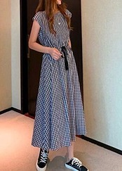 【2022最新】[アンリ] 4色展開 フレアワンピース リネン ミモレ丈 フォーマル 大人 カジュアル オフィスカジュアル 春夏 半袖 ワンピース ロング丈 シンプル 無地 ベルト付き レディース 綿麻 綿 麻 夏 なつ サマー マキシ丈 スカート おしゃれ オシャレ 部屋着 家着 洋服 体型カバー 着痩せ きやせ 楽チン ルームウェア チェック XL AN227 XL (2) | BOSSO