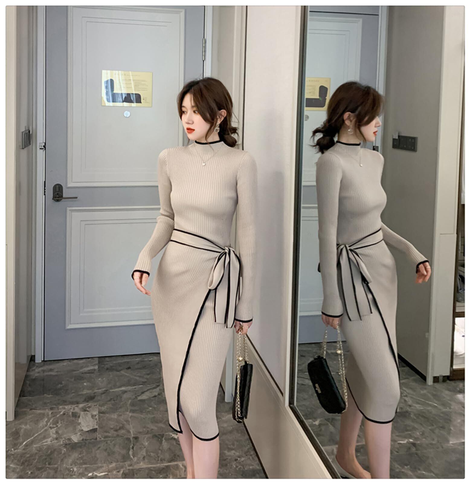 [Village H&T] 今季 ワンピース ニットワンピース スリム オシャレ きれいめ 長袖 1244