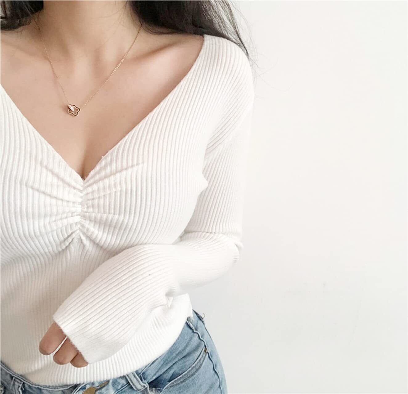 ■胸元を女性らしくセクシーに魅せる、フェミニンなVネックニットです。■大胆に開いたVネックの胸元は立体的にシワ加工が施され、とてもかわいいデザインです。■薄手で伸縮性のある生地感で、シャツやカーディガン、アクセサリーなどとのコーディネートにも重宝します。■カラーバリエーションも豊富で、気分に合わせて様々なシーンでオールラウンドに活用できるお洒落アイテムです。■寸法</BR> ●フリーサイズ:肩幅約30cm/袖丈約52cm/身幅約75~90cm/着丈約52cm(伸縮性あり)