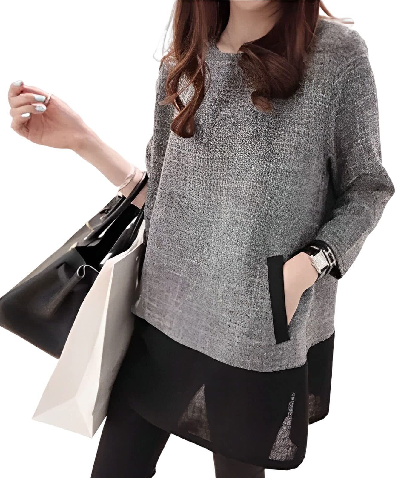 [BLANK BLANC] [ブランクブラン] チュニック ワンピース トップス レディース ツイード 配色 切り替え 体型カバー M~4XL B04