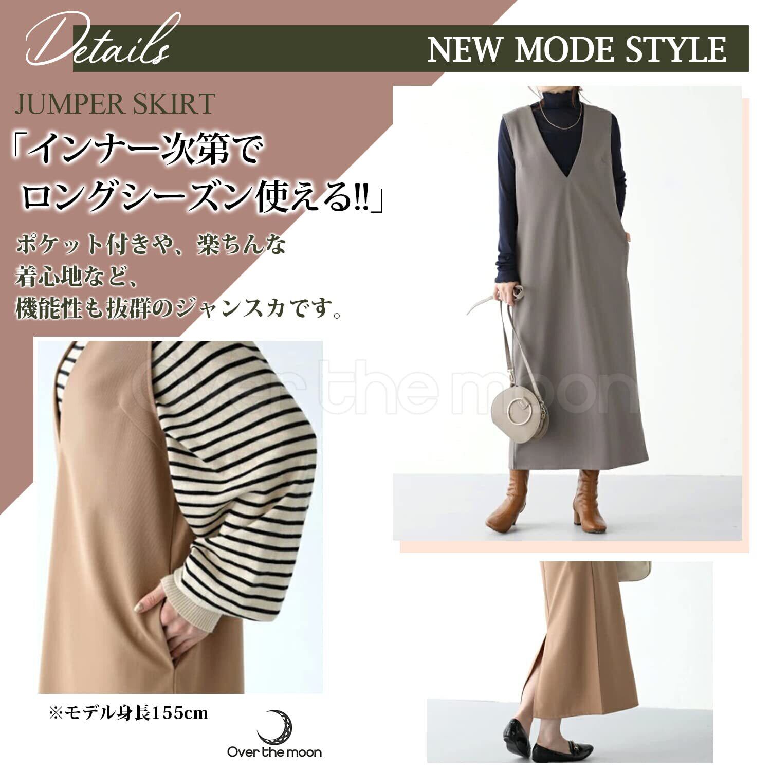 [Over the moon] ジャンパースカート ロング丈 Vネック ロングワンピース サロペット マタニティ 秋 冬