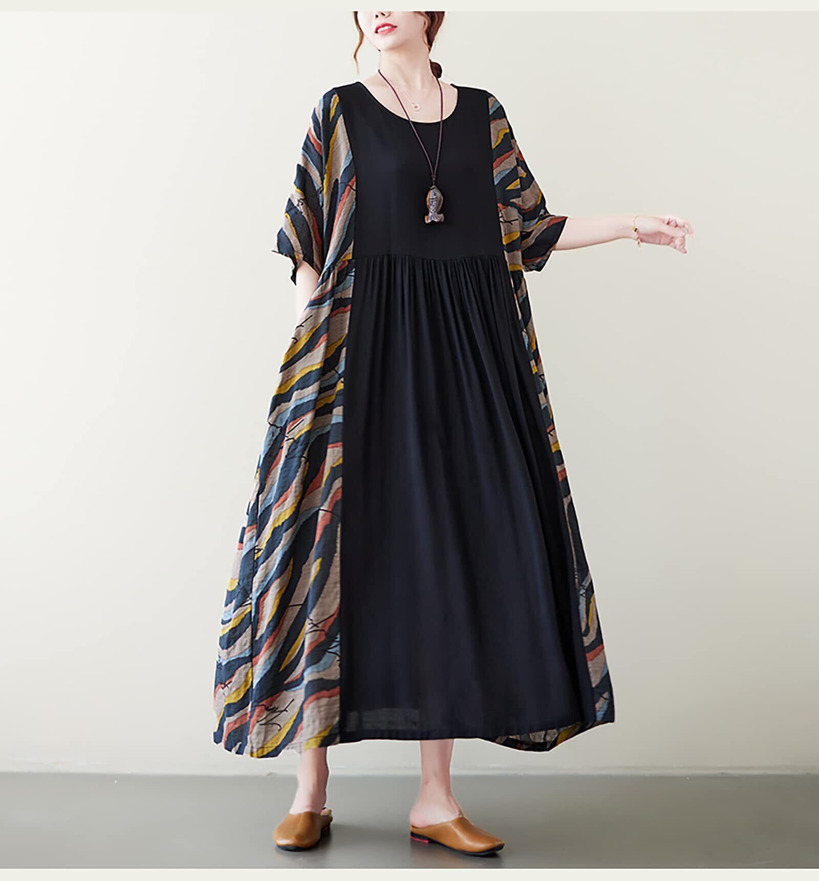 [MMTYRM] ワンピース ロング 半袖 ゆったり ストライプ マキシワンピース オーバーサイズ 大振り子 レディース 韓国ワンピース 夏服 きれいめ