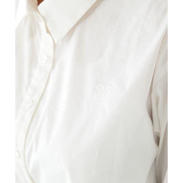 レイヤード風スタイルを叶えるシャツワンピース。胸元のエンブレムロゴもさりげないポイント。ウエスト部分にゴムをいれ、短丈シャツと重ね着したように見せながらラクに着こなせるミニ丈のシルエット。一枚でスタイルアップ効果が期待できます。※撮影時照明の関係により、色味が違って見える場合がございます。