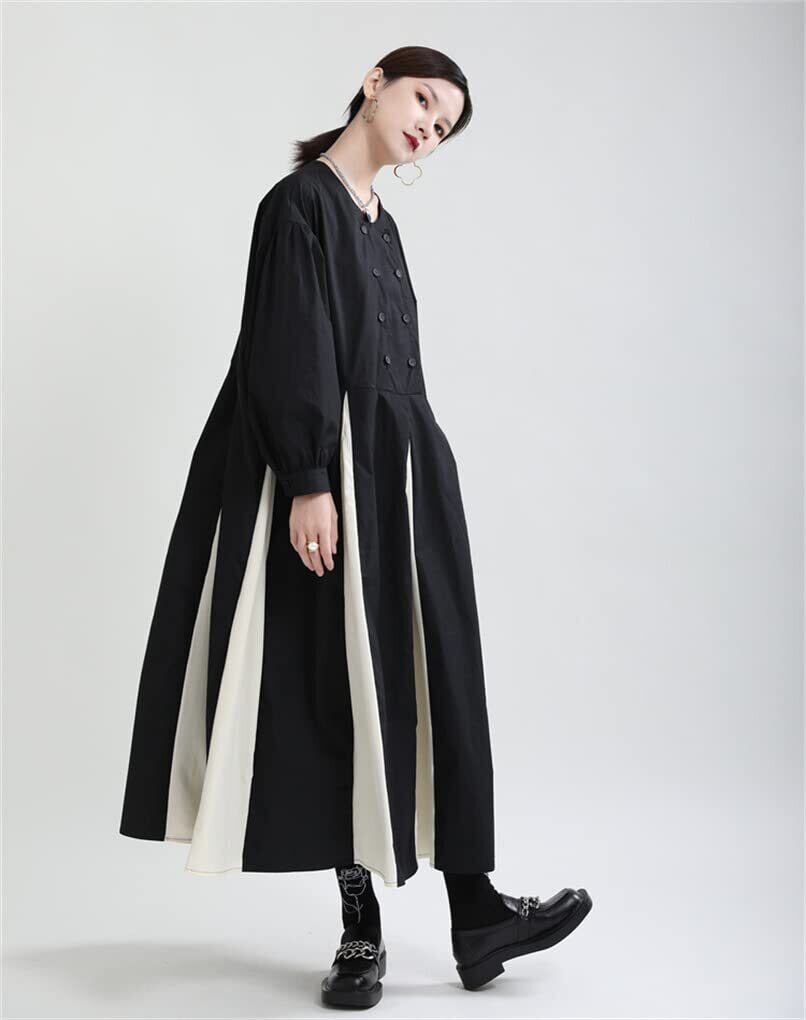 【2022最新】[もうほうきょう] ロングワンピース レディース ワンピース 長袖 ドレス 体型カバー ゆったり きれいめ カジュアル ドッキング 切り替え ミモレ丈 ロング丈 マキシ丈 おしゃれ 着痩せ 普段着 通勤 お呼ばれ 春秋冬 | BOSSO