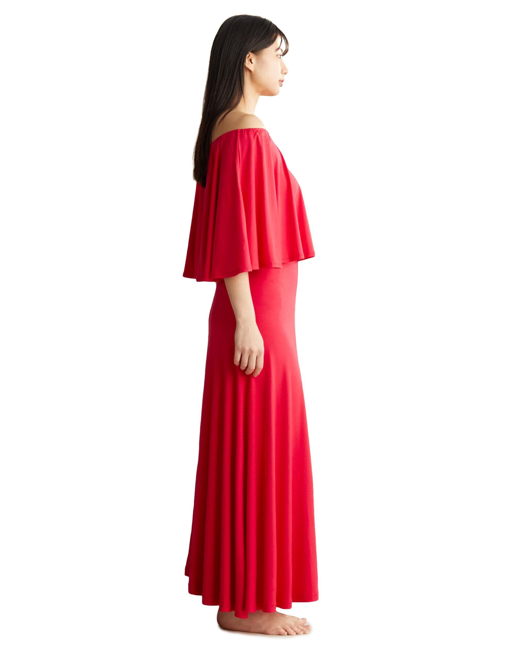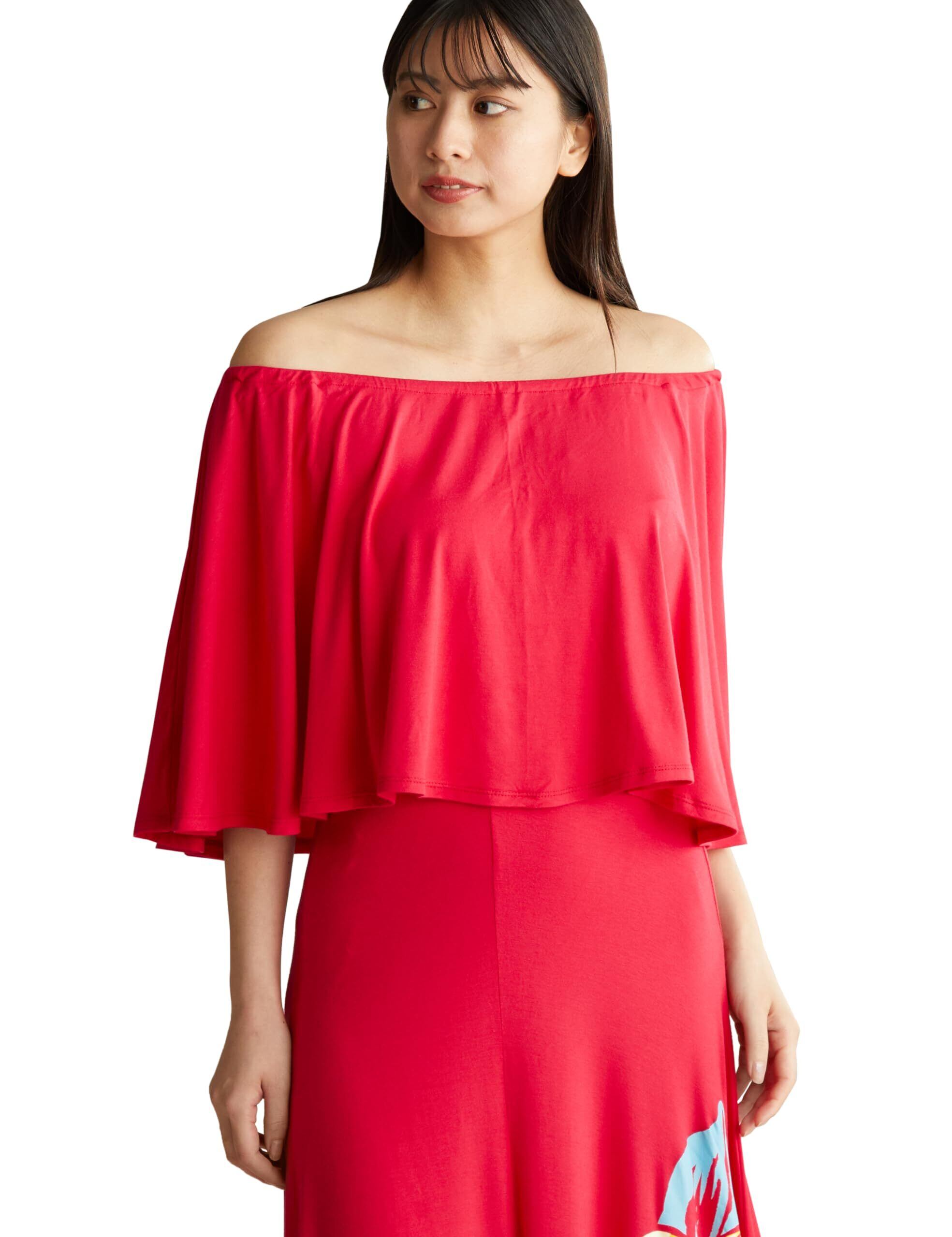 [マウナロア] カジュアルドレス Aulii ハイビスカス ケープ&フレアーワンピース M RED レディース