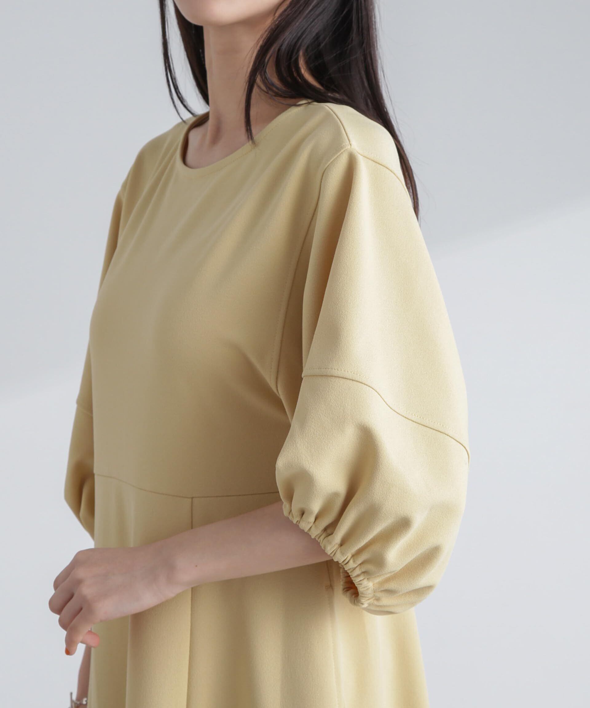 『さらっと一枚でコーディネートが完成するワンピース』Aラインシルエットでキレイめな印象のワンピース。高めのウエスト切り替えと腕を華奢に見せてくれるランタンスリーブで、体系カバーも叶うひと品。学校行事やちょっとしたお呼ばれシーン、お食事会など、クローゼットに備えておくと頼れる逸品です。