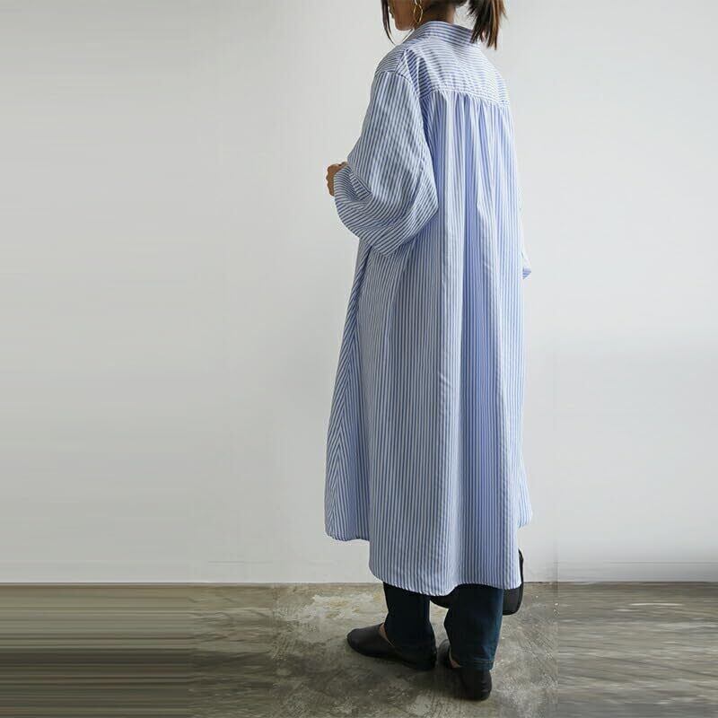 [アンドイット] ストライプ ブロード ボリュームスリーブ シャツ ワンピース レディース ボリューム袖 ぽわん袖 M ホワイト×ブルー