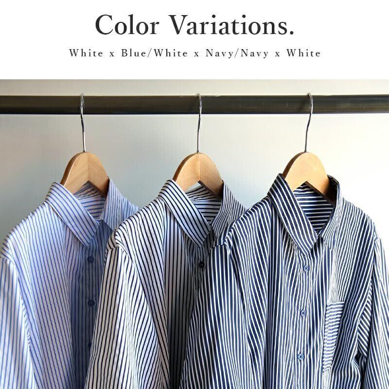 [アンドイット] ストライプ ブロード ボリュームスリーブ シャツ ワンピース レディース ボリューム袖 ぽわん袖 M ネイビー×ホワイト