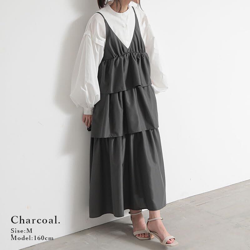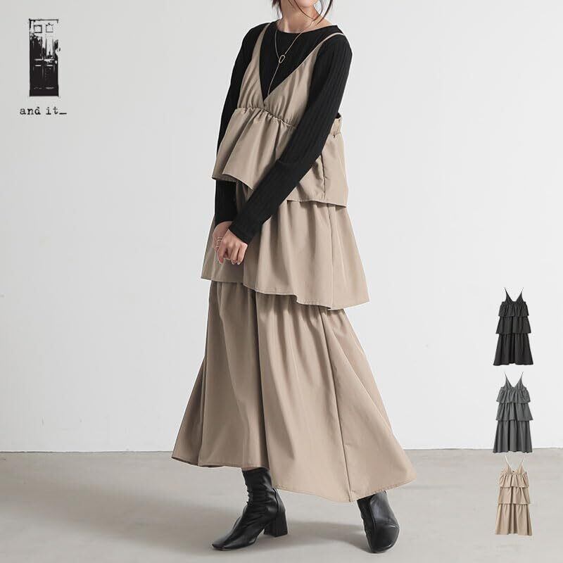 [アンドイット] ふんわり軽い ティアードフリル キャミ ワンピース レディース