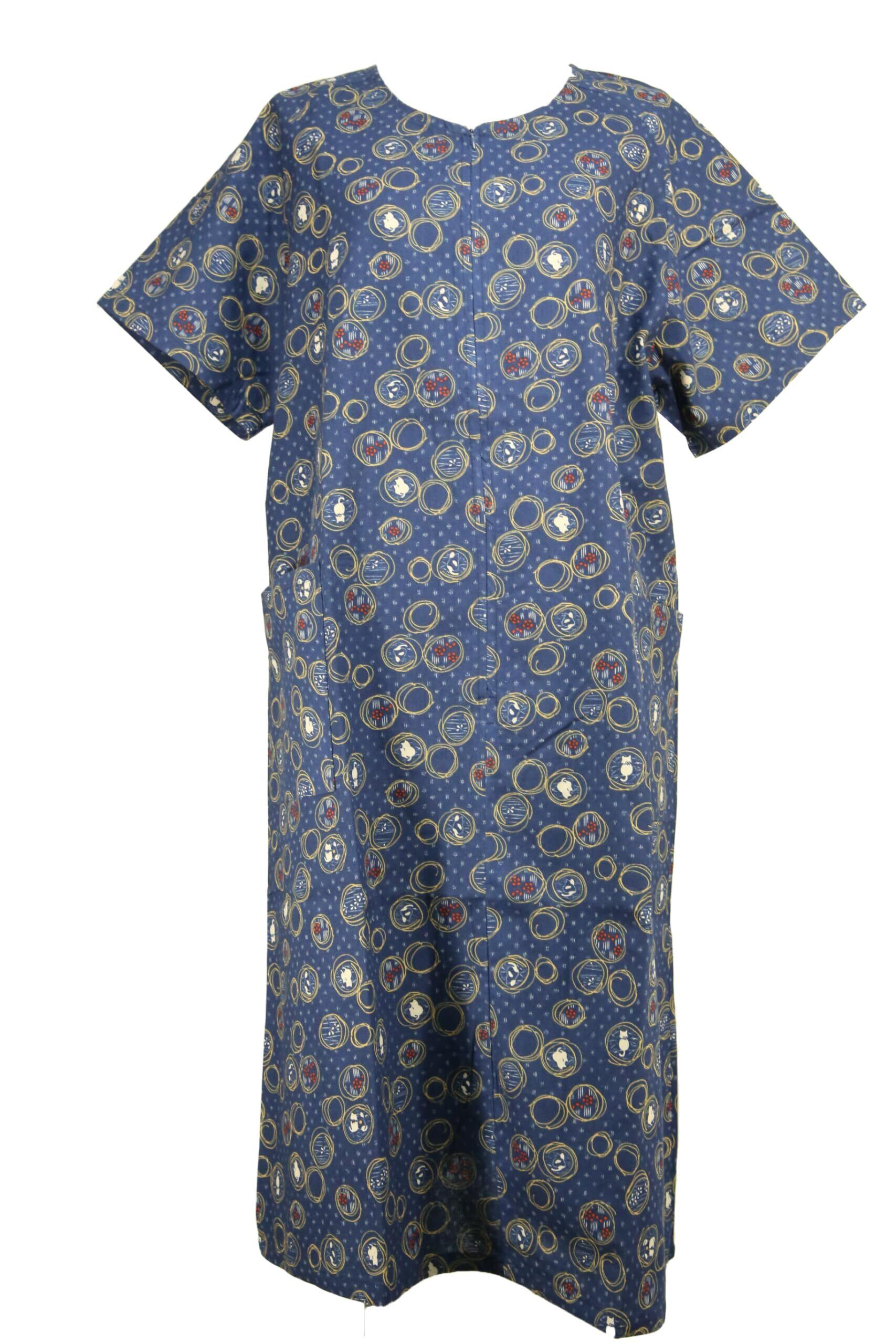 毎年売れ続けている夏の定番、和柄生地を使用したワンピース。前開きで着やすく脱ぎやすいデザインで贈り物にもおススメです。蒸し暑い夏に快適な綿100%で、風通し良く、素肌に心地よいアイテム。