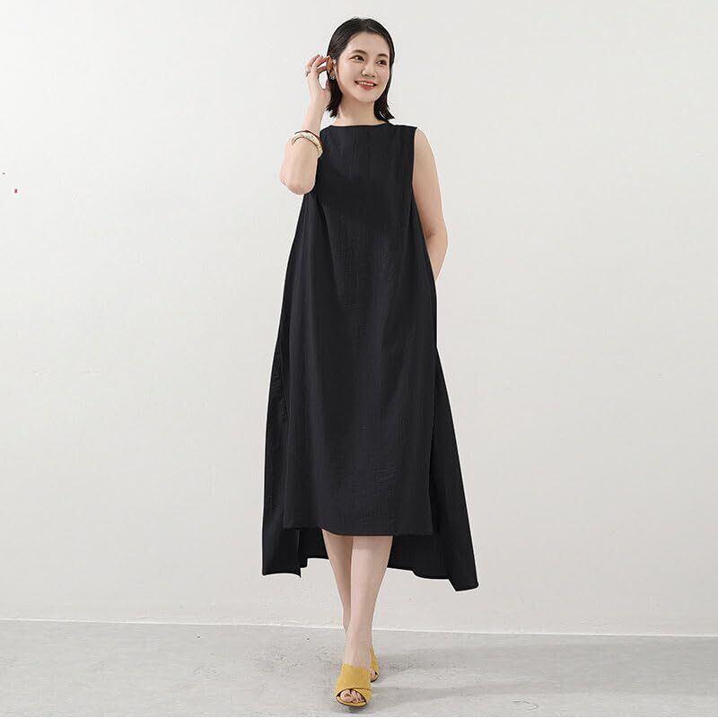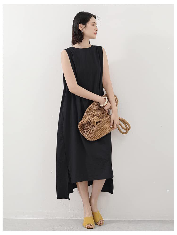 【新着商品】[SPRING SEAON] ノースリーブ ワンピース 袖なし ロング ロングワンピ フレア クルーネック 丸襟 柔らかい 無地 シンプル カジュアル 通勤 通学 春 夏 ワンピスター 体型カバー 着やせ ロングスカート ナチュラル きれいめ おしゃれ ショッピング | BOSSO