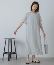 『一枚で女性らしいレイヤードスタイルが完成』シーズンライクなレイヤードが様になる異素材コンビのワンピース。表側には落ち感が上品なシアー素材、インナーには柔らかなカットソー素材を採用し、素材のコントラストを楽しめるデザインに仕上げた一枚。パンツやプリーツスカートを裾からチラッと覗かせたり、上にジャケットやオーバーサイズの羽織りを合わせるコーディネートもオススメです。