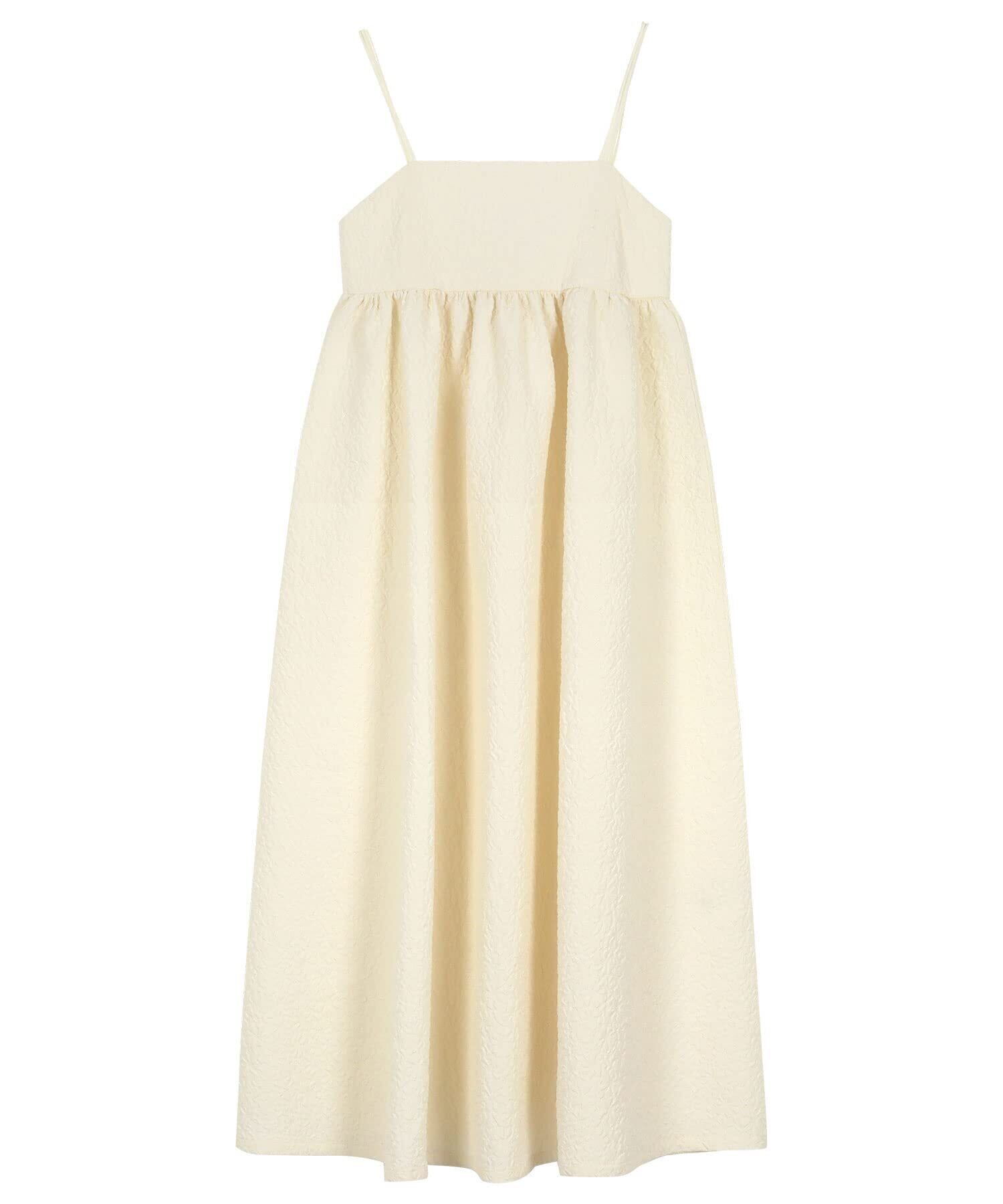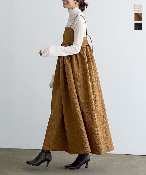 旬な印象を醸し出すふくれジャガードであつらえたキャミワンピース。ボリューム感のあるシルエットで女性らしさを演出します。インナー次第でシーズンレスで着用でき、スタイリングも様々にお楽しみいただけます。