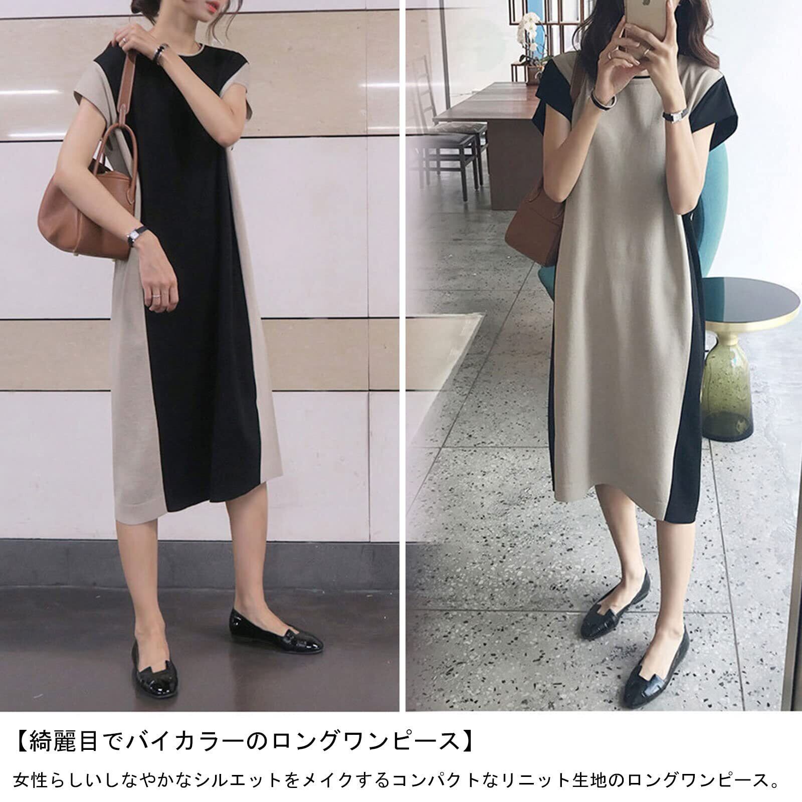 [MEME XTRA] ワンピース レディース ニットワンピース ロングワンピース ゆったり 着痩せ バイカラー 袖なし 美シルエット 大人 丸襟 おしゃれ シンプル カジュアル 無地 体型カバー 上品 オフィス 通勤 きれいめ 可愛い 春夏