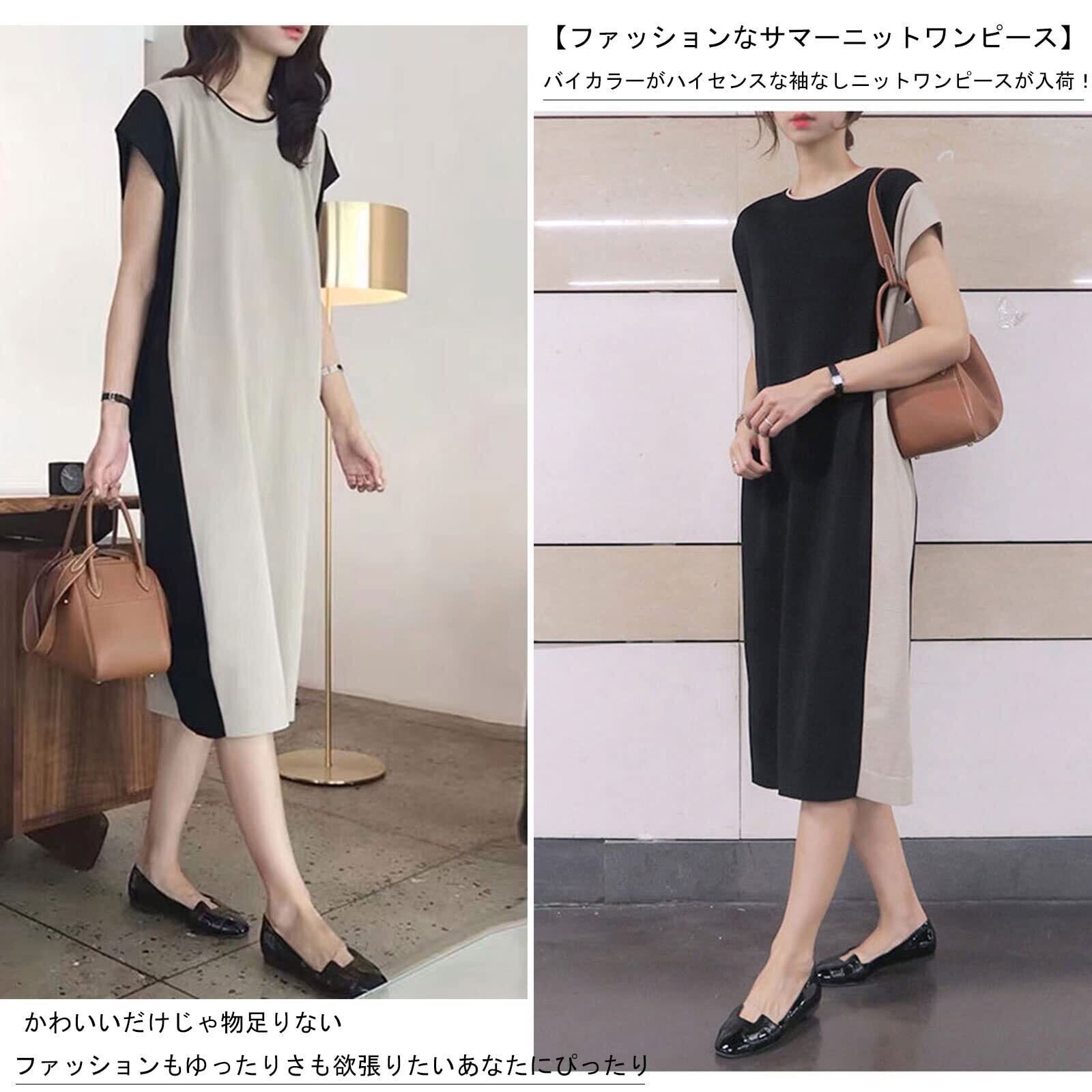 【人気商品】[MEME XTRA] ワンピース レディース ニットワンピース ロングワンピース ゆったり 着痩せ バイカラー 袖なし 美シルエット 大人 丸襟 おしゃれ シンプル カジュアル 無地 体型カバー 上品 オフィス 通勤 きれいめ 可愛い 春夏 | BOSSO