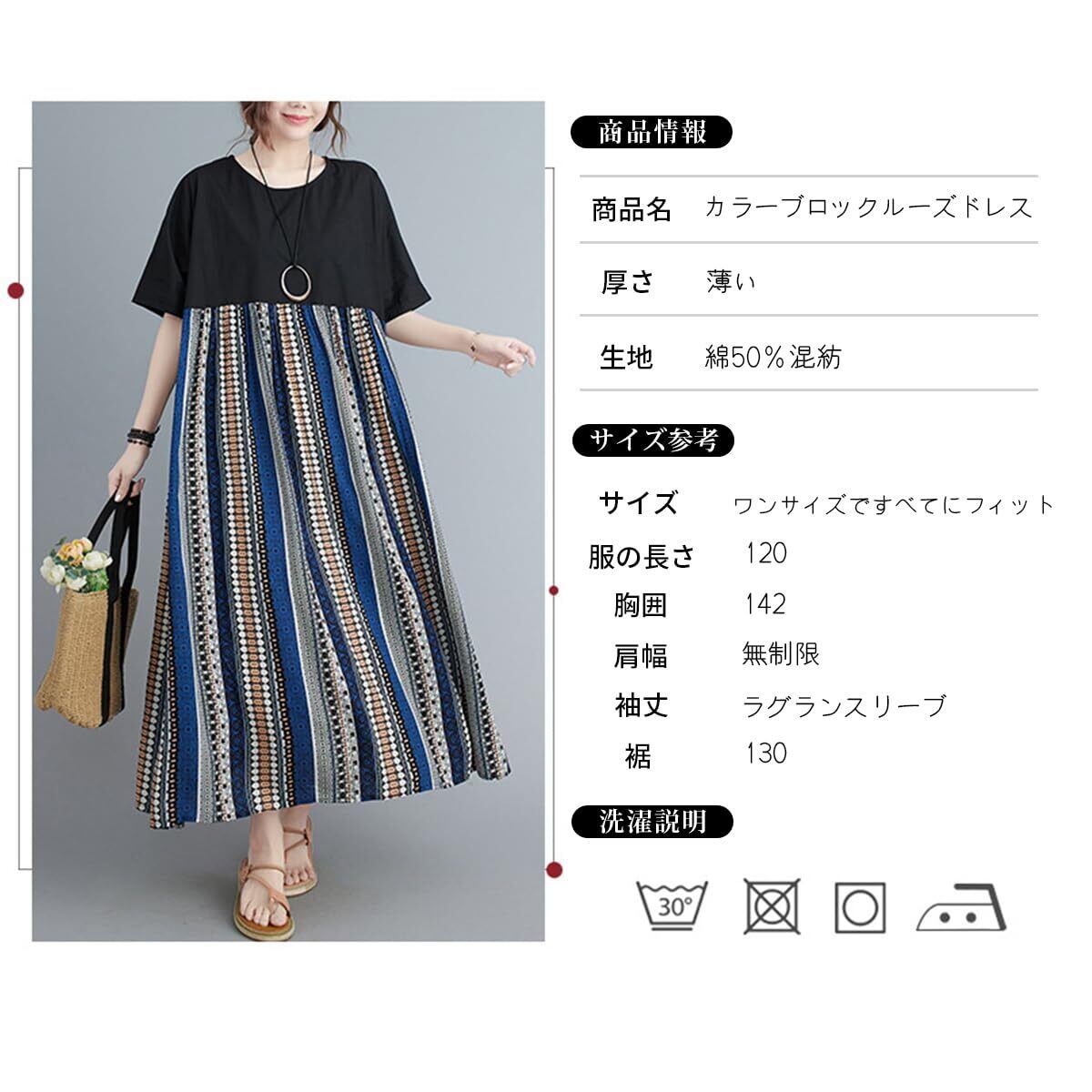 [FEISEDY] 半袖ワンピース レディース 学生ファッション レトロ ゆったり プリント 花柄 ストライプ 丸首 丸襟 カジュアル 年齢ダウン 可愛い 修学旅行 入学式 A8088
