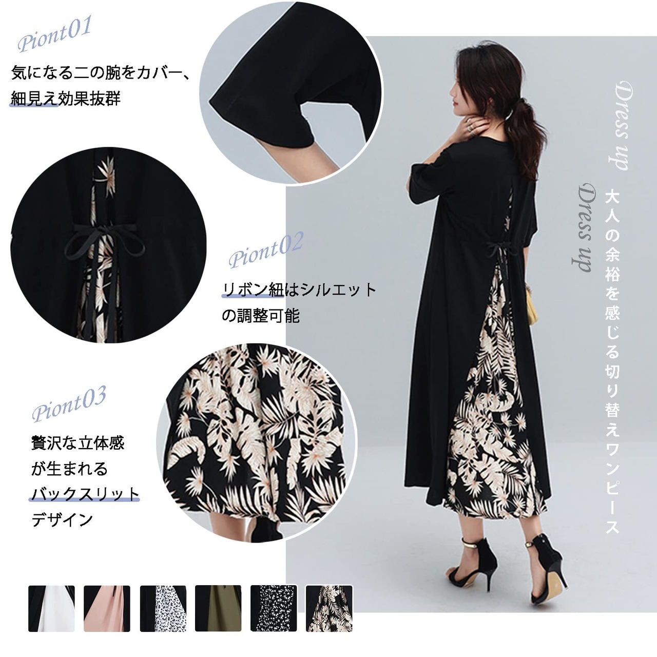 【大人可愛い切り替えワンピース】ワンピースの前面は主に黒で、シンプルで絶妙に見えます。背面は切り替えのデザインで、リボンと柄で気分に合わせて選択してください。ハリのある素材がきちんと見えに一役、体のラインを拾わずすっきり着られます。遊び心のあるデザインやふんわりした裾ジが、春のワクワク感を高めてくれそう。ウエストが自然とくびれて見えるシルエットやロング丈デザインなど、着ていてアガるポイントも充実。